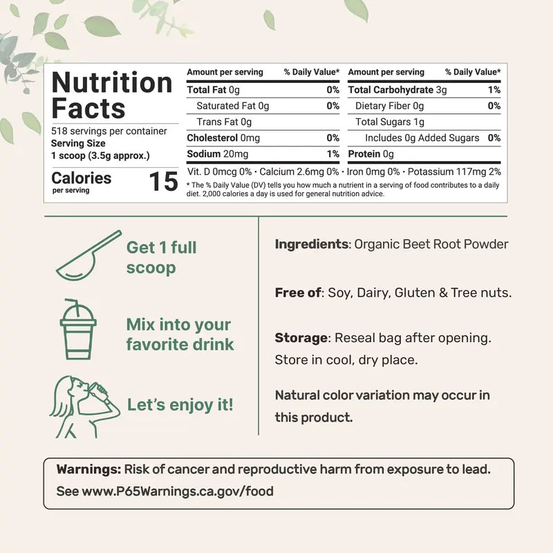 1 x FREE eBook:The Ultimate Guide to Natural Energy & Heart Health – Science-backed tips, daily routines, and nutrition advice to help you maximize the benefits of your Beet Root Powder and feel your best every day.
